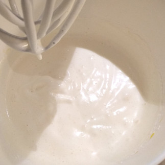 Batir los huevos con el azúcar, la pizca de sal y el agua, hasta que se forme una crema muy blanca.